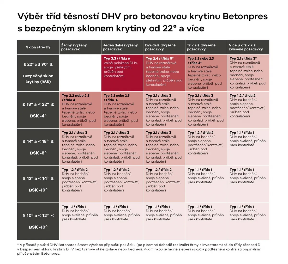 Klíčem pro výběr DHV je správné stanovení (a dodržení) třídy těsnosti. I když na dvě různé střechy použijete stejnou krytinu, můžete potřebovat jinou podstřešní fólii. Střechy totiž mohou mít rozdílné délky krokví, být konstrukčně řešeny odlišně nebo se nacházet v jiných klimatických podmínkách. Roli hraje také to, zda se podkroví využívá jako obytný prostor, nebo ne. Tříd těsnosti je celkem šest, přičemž třída DHV 1 je nejvíce přísná, třída 6 má pak nejmenší požadavky.