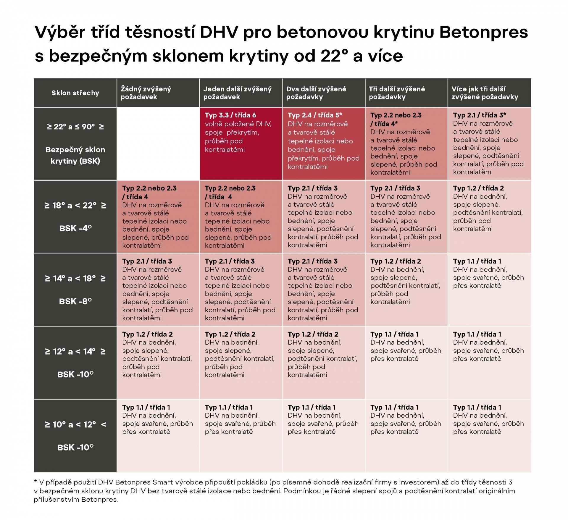 Do jaké třídy těsnosti DHV střecha patří, závisí na řadě podmínek. Patří mezi ně sklon střechy, typ použité střešní krytiny, ale také lokalita konkrétní stavby a množství tzv. zvýšených požadavků, jež na střechu mohou působit. Není žádný? Nebo je pouze jeden, jsou dva, tři, nebo dokonce více než tři? To zásadně ovlivňuje volbu typu DHV. Zároveň je třeba určit, jestli se jedná o dvouplášťovou či tříplášťovou skladbu, zda difúzní fólie může být aplikována na bednění, či nikoliv, a také jestli nedochází k podkročení povoleného mezního sklonu příslušné fólie pro dané použití.