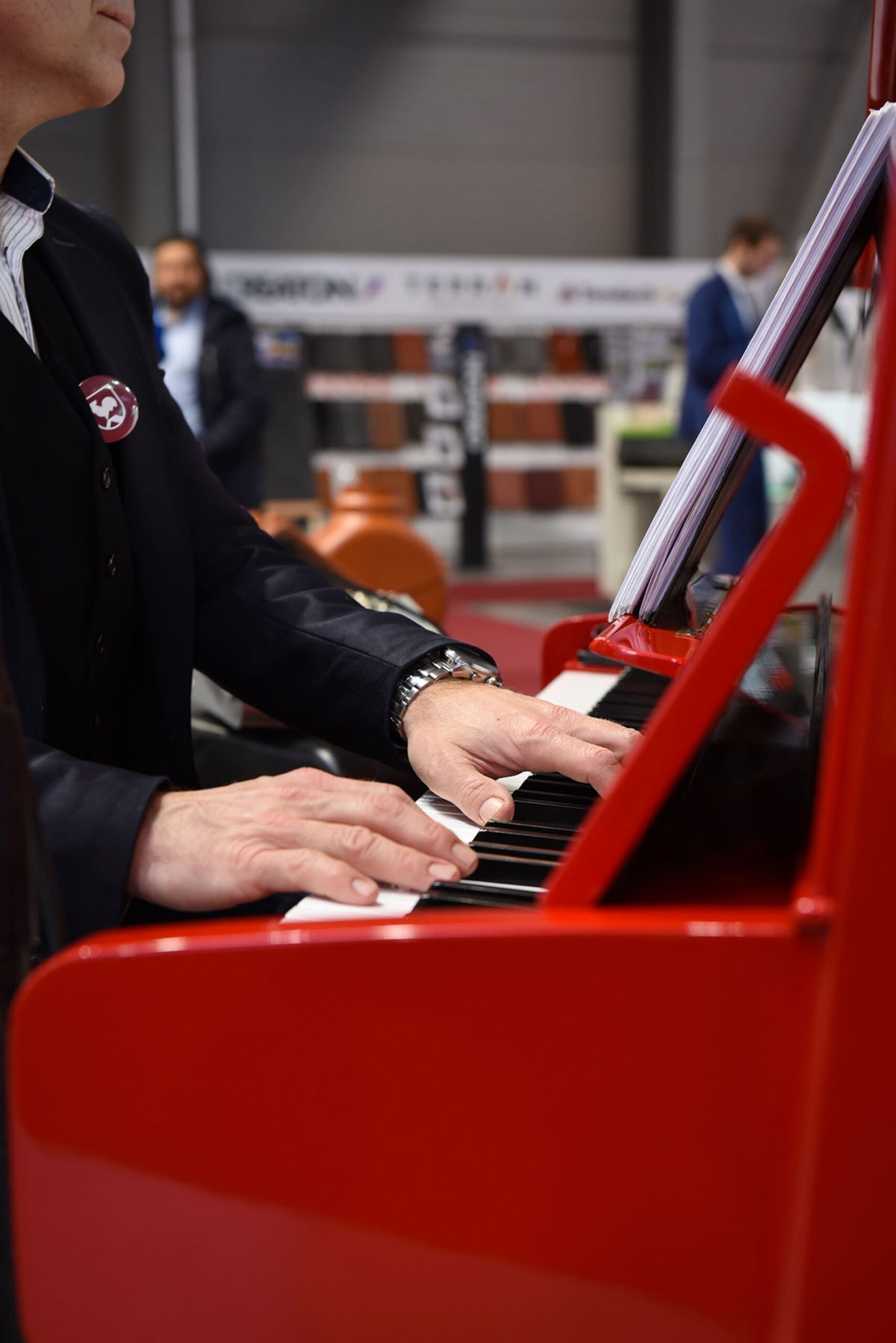 K tomu dozajista posloužila i nabídka, se kterou každý náš host mohl přijít do kontaktu. Specialisté na pokrývání střech se zajímali o střešní krytinu, střešní příslušenství a další materiály pro realizaci střešních systémů. Také si ale nenechali ujít možnost ochutnat z nabídky dobrot připravených jihočeským řeznictvím a uzenářstvím Bavorov. A k tomu si dát dobře nachlazené pivo, které k radosti většiny návštěvníků neúnavně chystal náš akční výčepní. A pokud byli návštěvníci „Betonpres expozice“ v pražských Letňanech spíš milovníky kultury než kulinářství, mohli se zaposlouchat do vystoupení klavírního mistra. Samozřejmě že i koncertní pianino bylo vyvedené ve firemní červené.